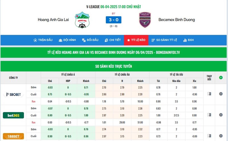 Cập nhật kèo nhanh chóng và chính xác