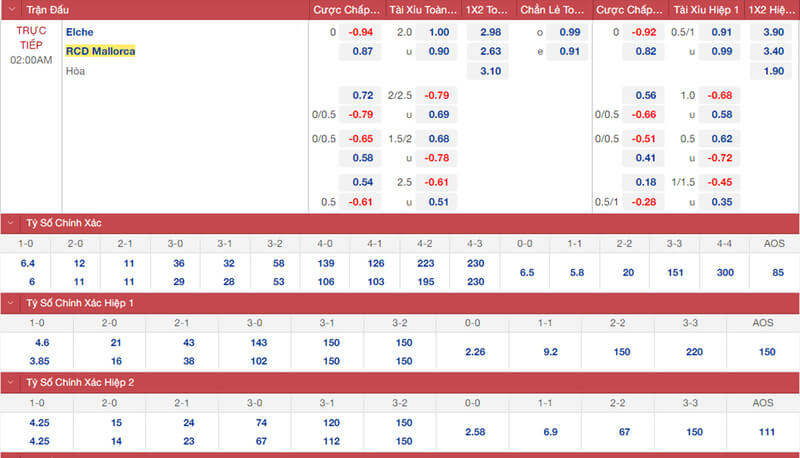 4. Theo dõi bảng tỷ lệ kèo
