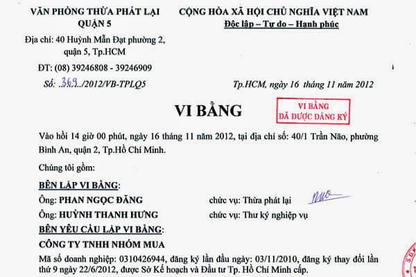 - Vi bằng được dùng để chứng minh các bên đã giao tiền, giao nhận tài liệu, bất động sản… làm căn cứ để các bên tiếp tục thực hiện hợp đồng, hoàn thành hợp đồng theo quy định của pháp luật, hoặc là cơ sở để các bên tiếp tục thực hiện hợp đồng. để giải quyết tranh chấp. Do đó, vi bằng là căn cứ để sang tên đổi chủ cho người mua. Chứng thư do thừa phát lại lập chỉ có giá trị làm bằng chứng về việc hầu tòa và các mối quan hệ pháp lý khác.