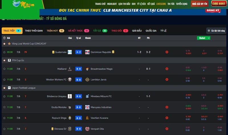 • Xem tỷ lệ kèo bóng đá trực tiếp biến động theo từng phút